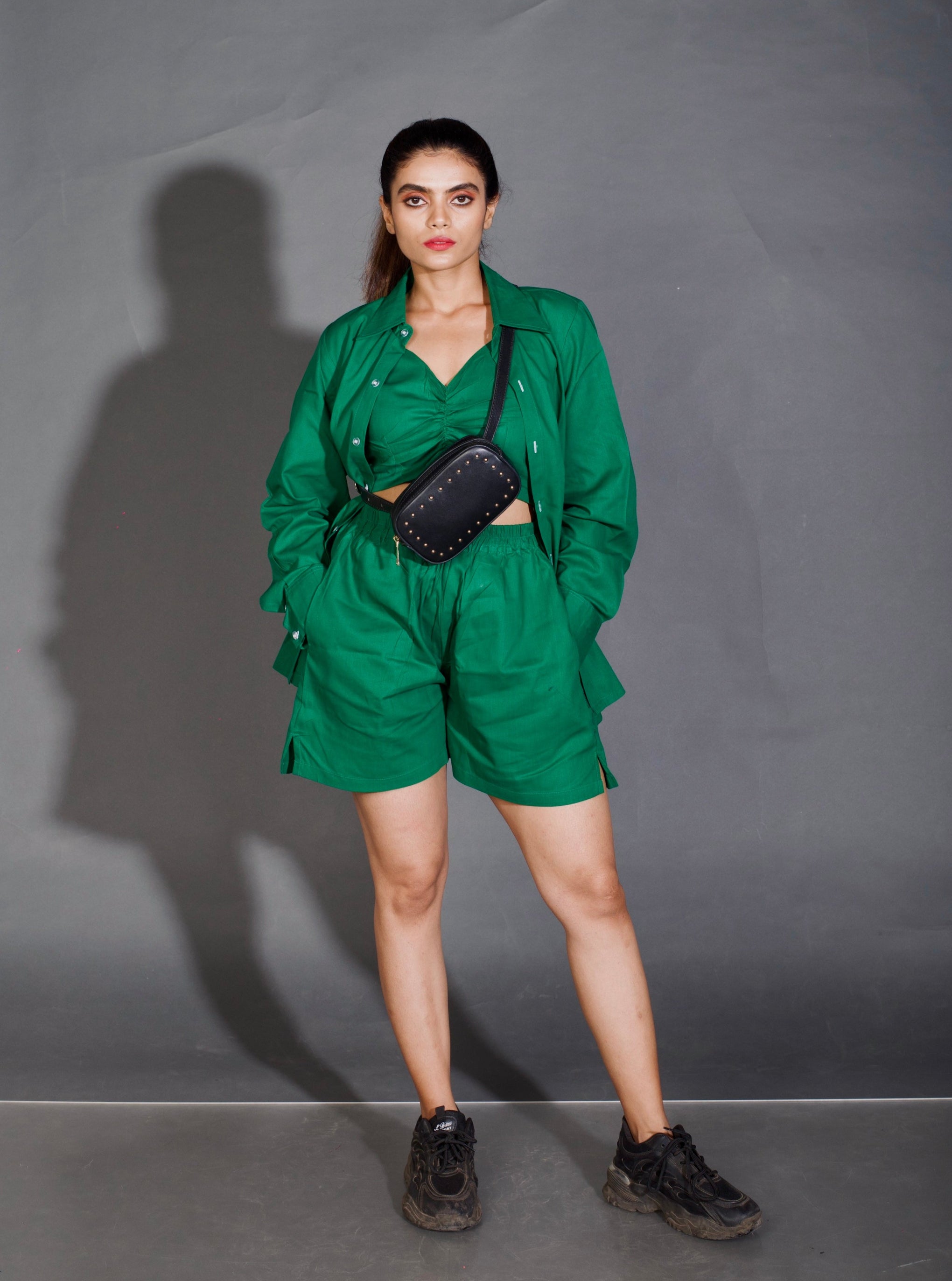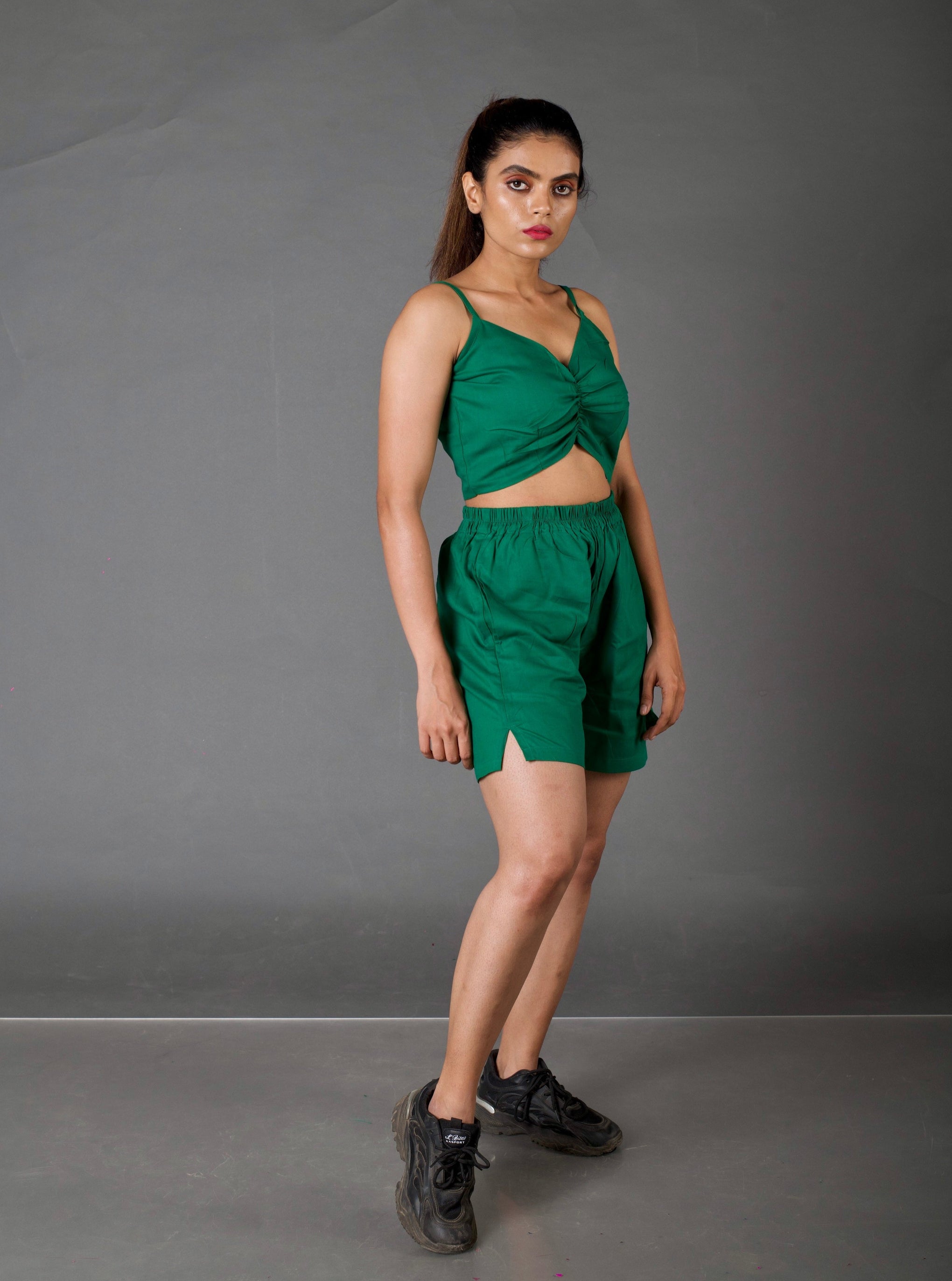 This multi functional shirt, ruched tube top paired with shorts is endlessly flattering and is easy to style. This will surely be your comfy go to outfit, add this to your cart now.