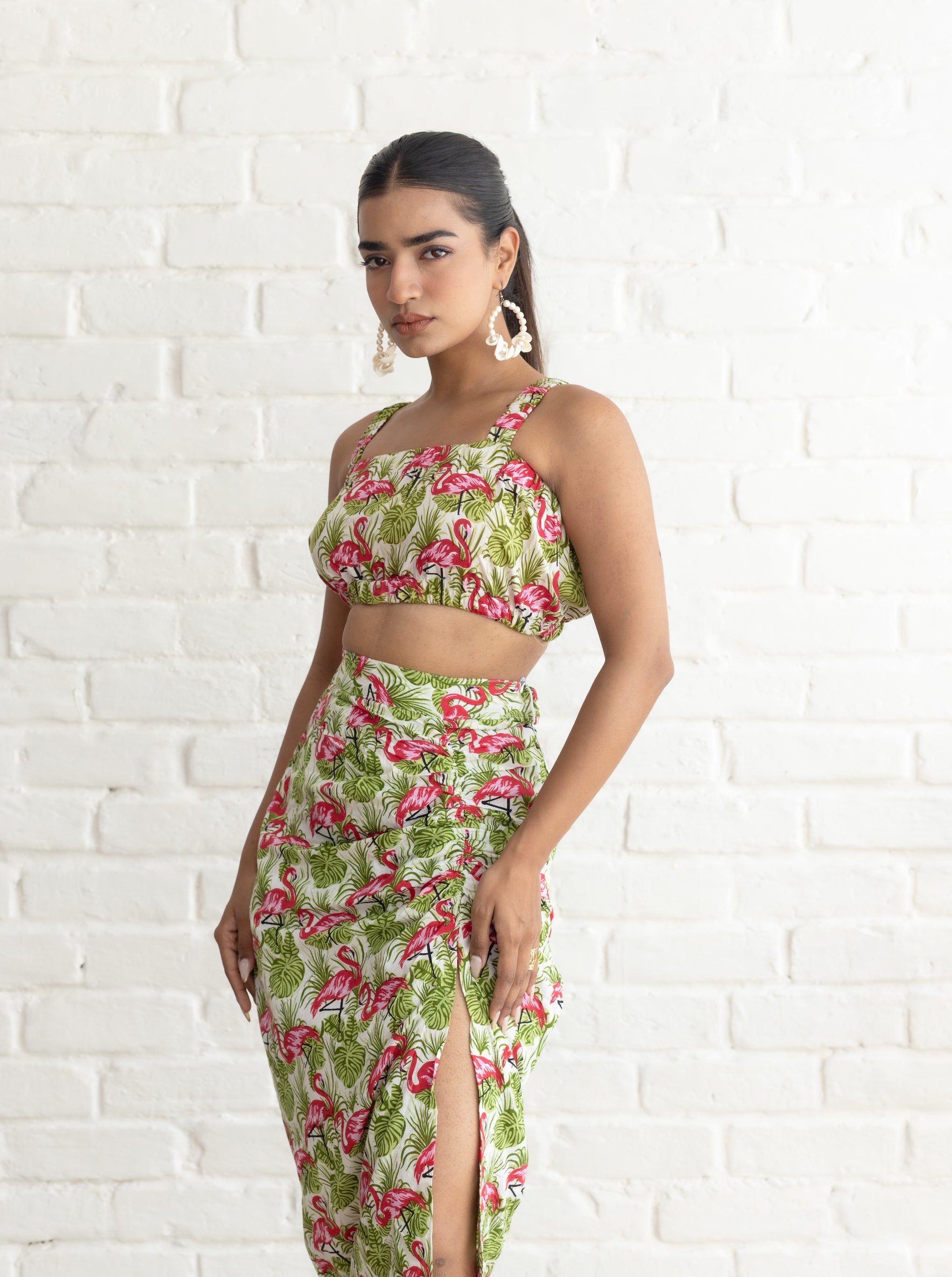 Embrace effortless elegance with our ruched skirt and sleeveless elasticated top. Designed with a feminine touch, this versatile set is perfect for weekend getaways or styling as multifunctional wardrobe staples. A must-have for modern, chic living!