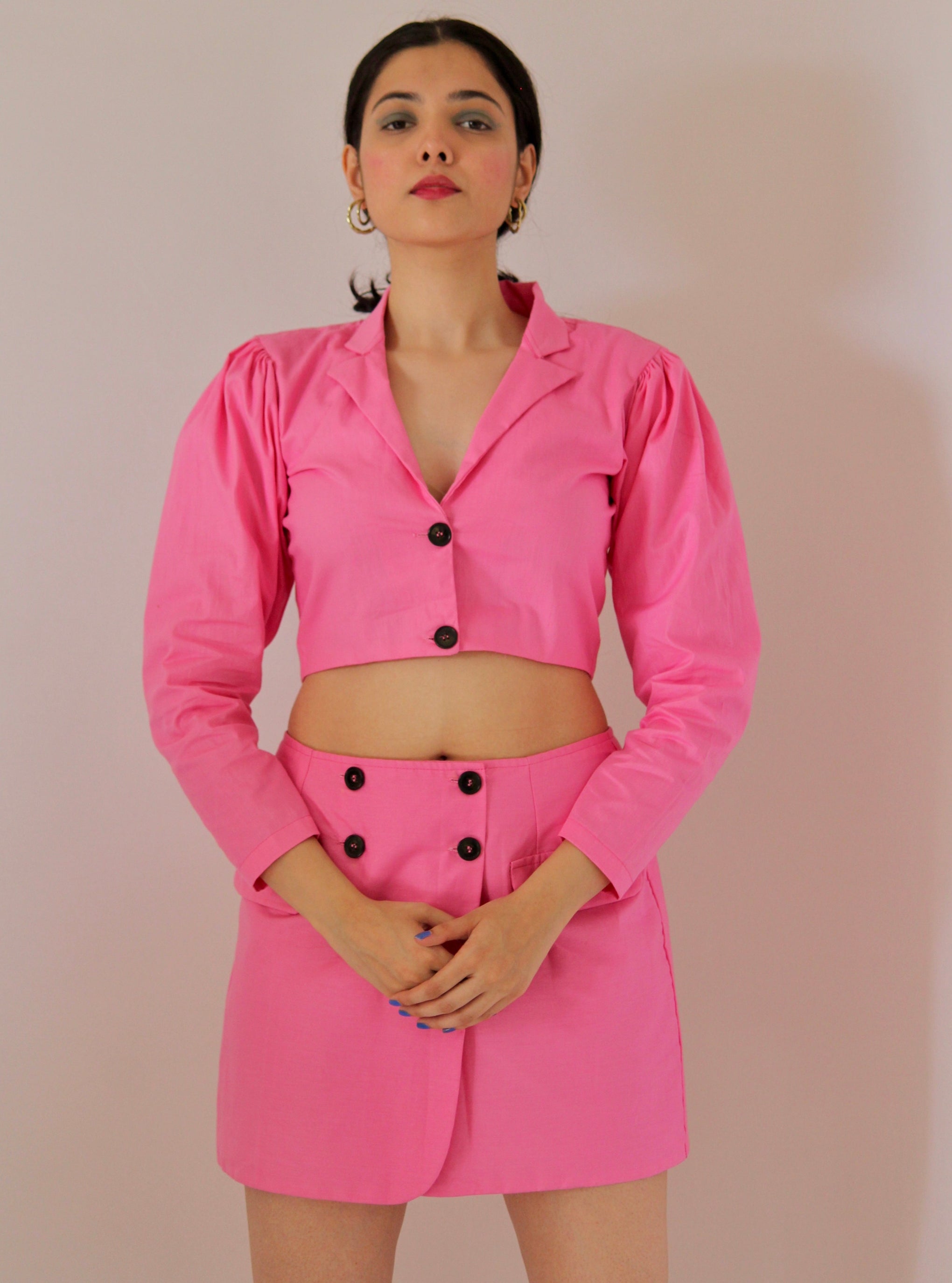 This set features a classic crop top with puff sleeves that is paired with overlapping skirt and is charming as ever. A must have piece to amp up your wardrobe with.