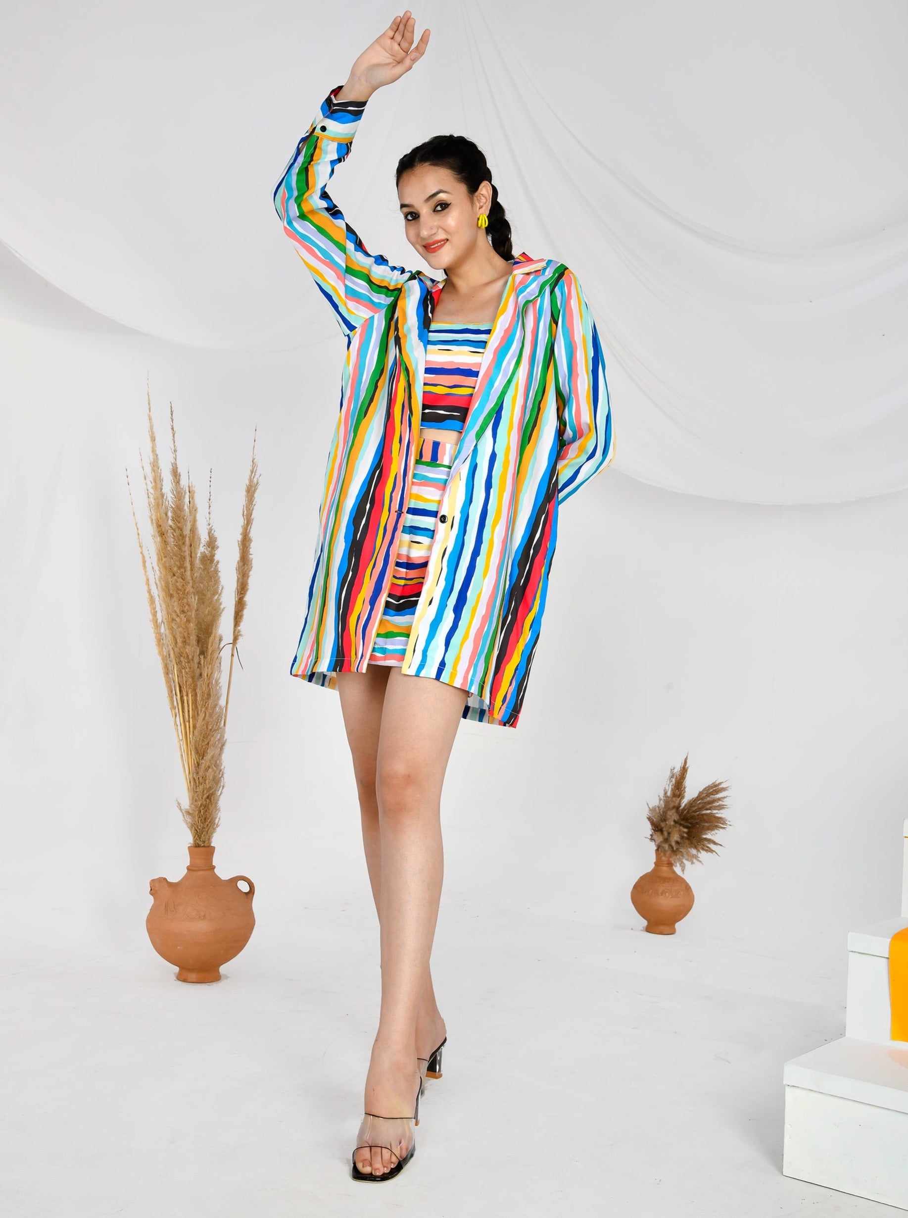 Elevate your wardrobe with this versatile 3-piece set, featuring a sleek striped skirt, matching tube top, and an elegant overlay. Designed for functionality and style, this set offers endless outfit possibilities.